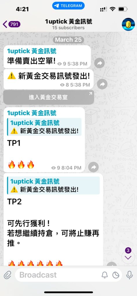 | Gold V.1.3.1 signal Telegram Channel (English) | 黃金交易訊號 V.1.3.1 Telegram 群組 (中文) |