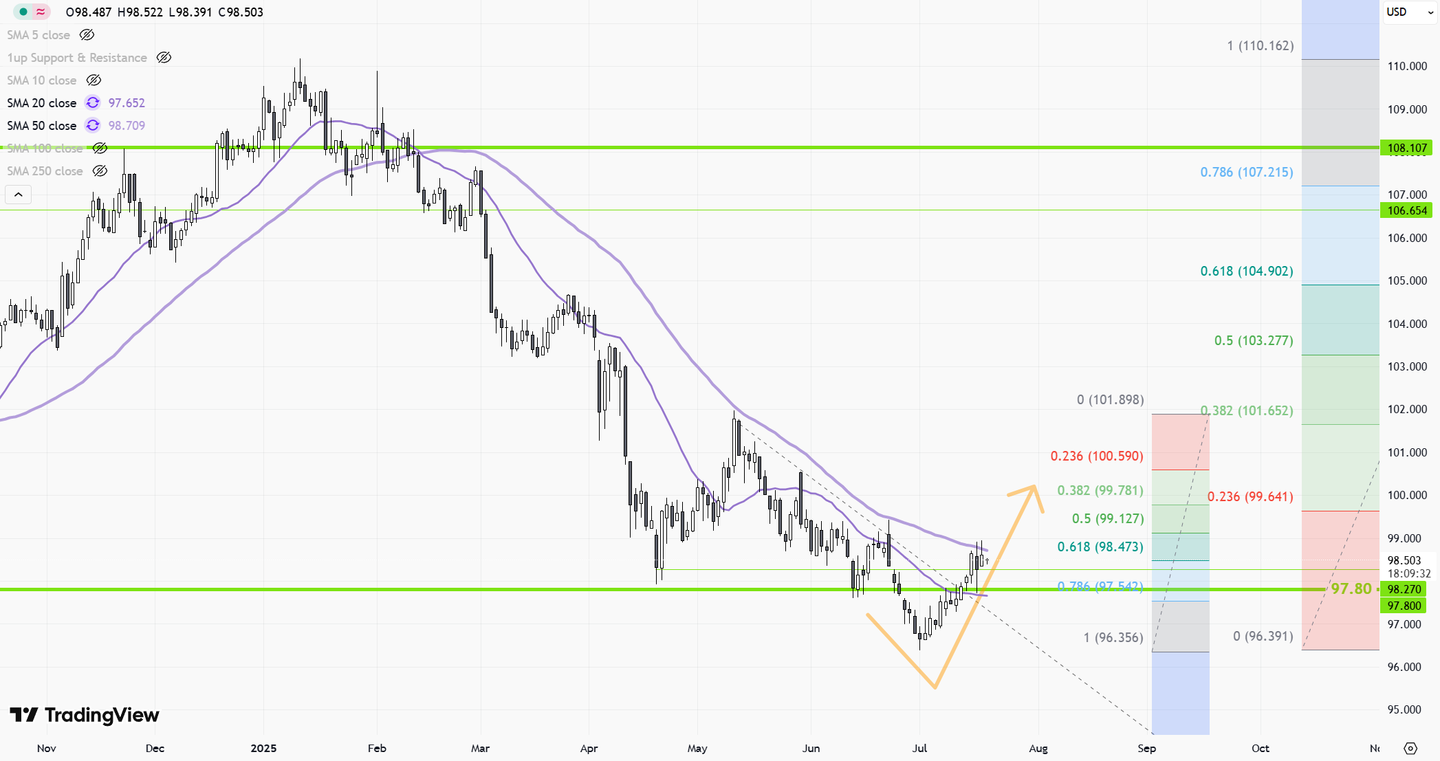 同期美元指數(DXY)從週初的97.85點反彈至週末的98.35點,累計上漲約0.5%。這一反彈主要受到美國經濟數據強韌性的支撐,特別是零售銷售數據和就業數據的超預期表現。