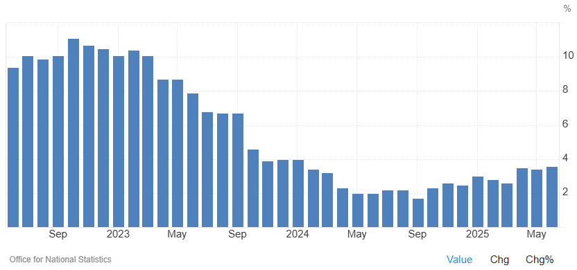 7月16日公布的英國6月份通脹數據成為英鎊下跌的關鍵催化劑。英國消費者物價指數(CPI)年率從5月的3.4%上升至6月的3.6%,創2024年1月以來的最高水平,超出市場預期的3.4%。