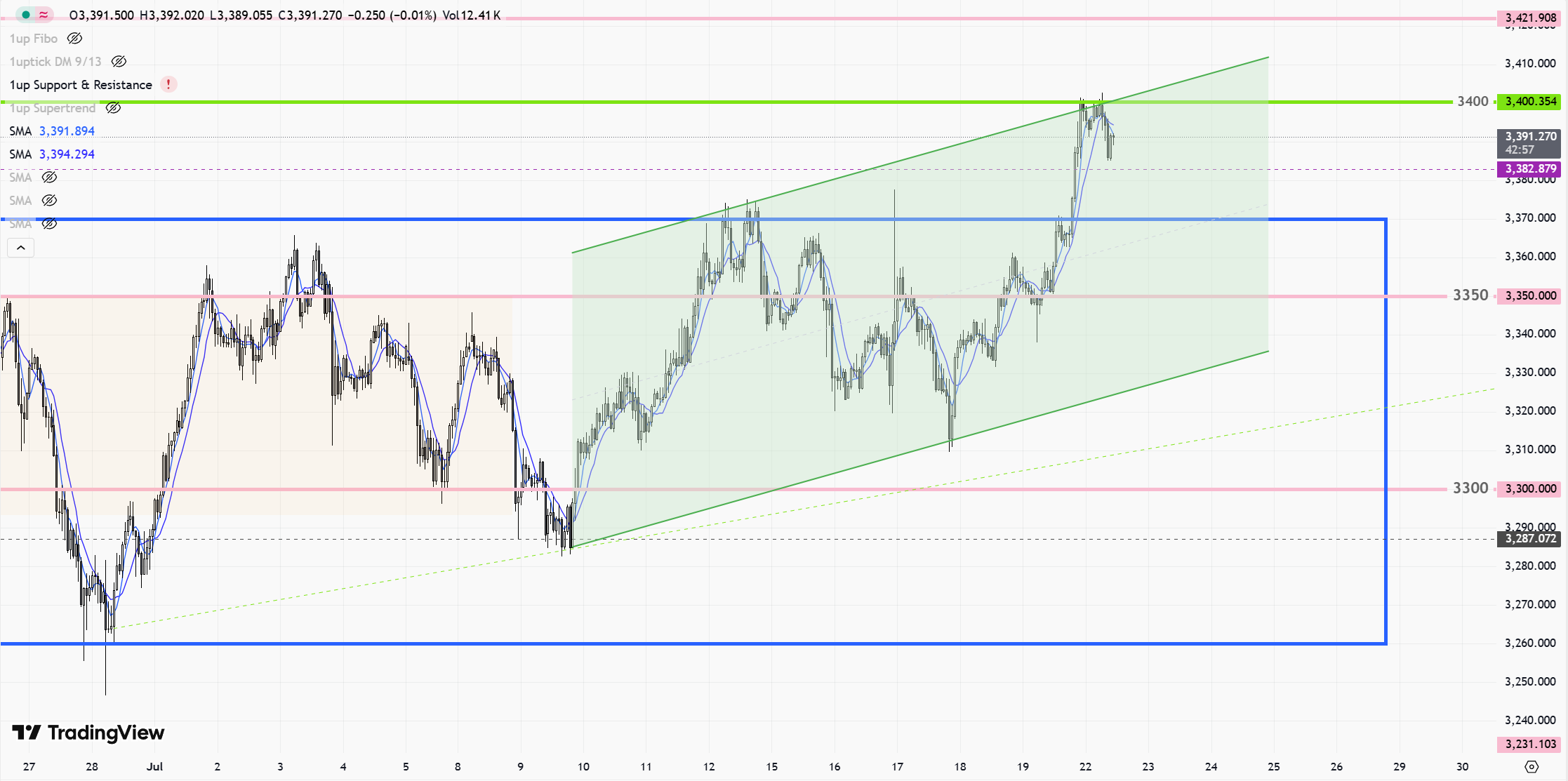 • 主要壓力區為3,360–3,415,上方若強勢突破,後續可留意3,435以及3,500兩道關卡。