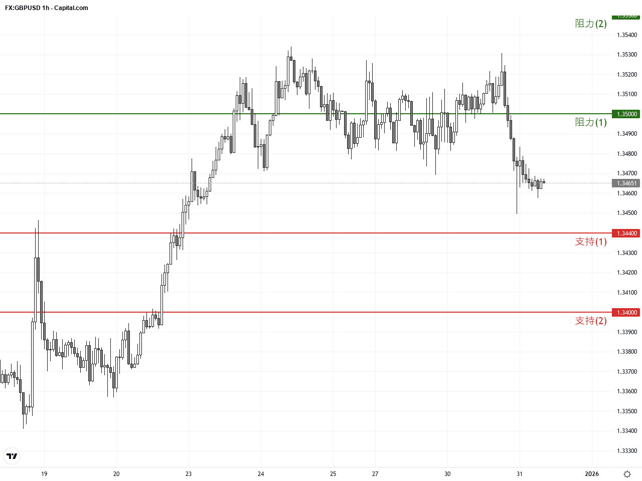 在過去的24至48小時內,GBP/USD匯率呈現狹窄波動,基本維持在1.346左右的位置,幾乎與昨日收盤價1.34673持平。英鎊兌美元的這種盤整態勢反映出市場在迎接新年之際的謹慎態度,交易員普遍等待美聯儲(FOMC)會議記錄的公布以獲取下一步政策指引。美聯儲記錄可能給美元走勢帶來顯著影響,進而影響英鎊兌美元的價格走向。