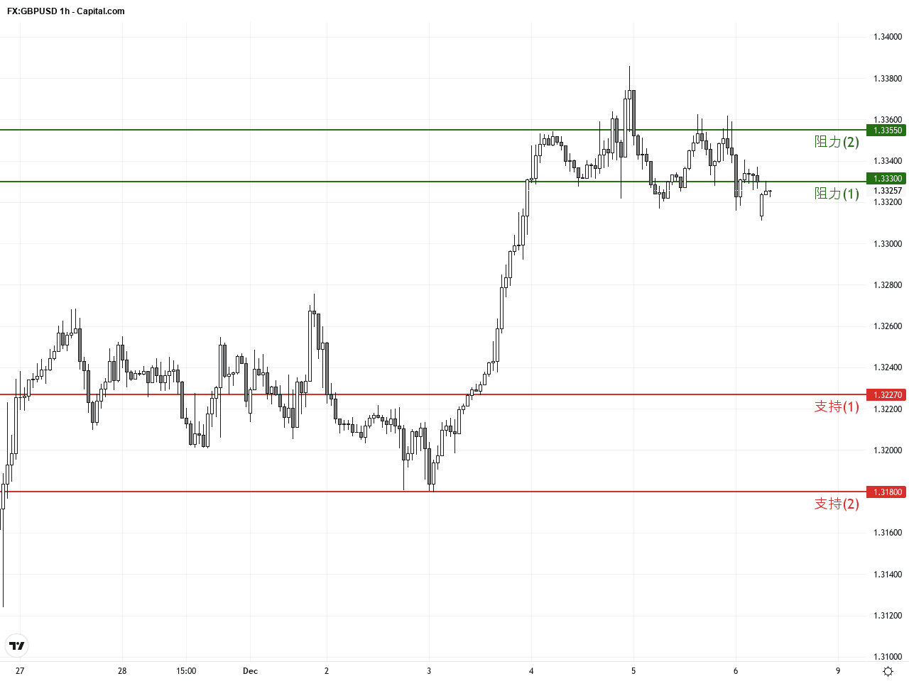 過去24至48小時內,GBP/USD 歐元英鎊兌美元匯率展現出顯著的市場波動。昨日收盤價為1.33255,市場受美國經濟數據疲軟及英國預算案公布影響,英鎊保持在五週高位上下震盪。