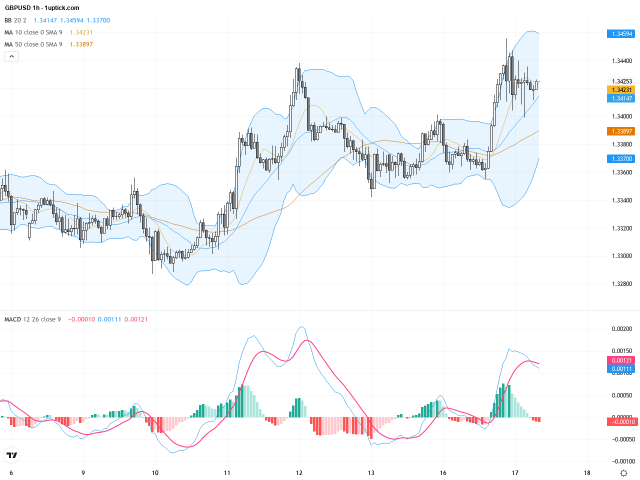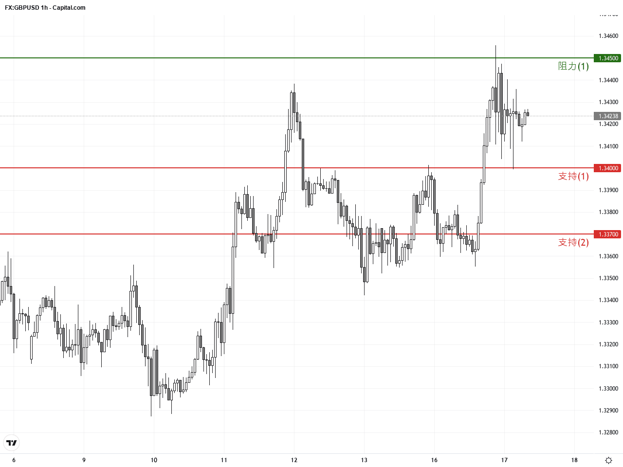 過去24至48小時內,GBP/USD經歷了顯著波動,受多重經濟數據和市場情緒影響。昨天收於1.34253附近,英鎊兌美元的價格因美國公佈的疲弱就業數據而大幅上漲,美元承壓,推動英鎊走強。根據最新消息,美國就業報告顯示勞動市場有所放緩,這對美元造成了負面影響,進而帶動GBP/USD上升約0.42%。