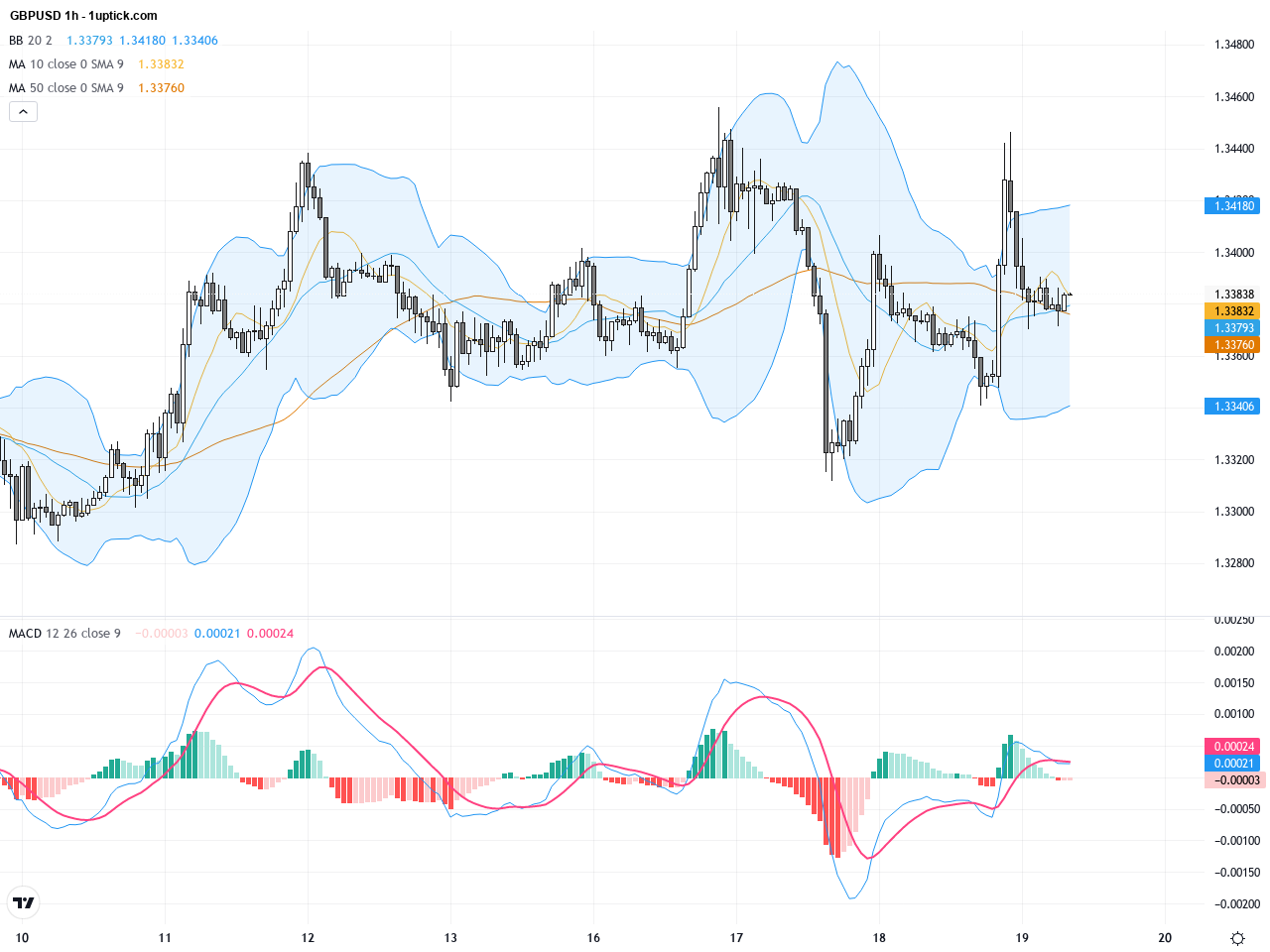 GBPUSD目前技術面關鍵在於是否能成功站穩並持續維持於1.34上方,形成有效支撐。日線圖上,價格有形成雙底盤整結構的初步跡象,這為後市反彈提供基礎。時線圖的黃金交叉和MACD多頭擴散信號暗示短期內可能持續走高,但需注意早盤阻力區域及潛在假突破風險。近期主要的蠟燭圖形態如多頭吞沒形態,進一步強化多方動能的即時信號。今日GMT+1時區經濟日曆中,未有直接影響GBPUSD的英美重大經濟數據發佈。然而歐洲及英國的零售銷售數據將於早盤公布,值得關注其與市場預期的差異,可能會對英鎊短線價格帶來些許波動。此外,美國16:00時的消費者信心指數和相關通膨預期亦值得留意,但整體來看今日無顯著直接事件可能引爆GBPUSD價格大幅波動。