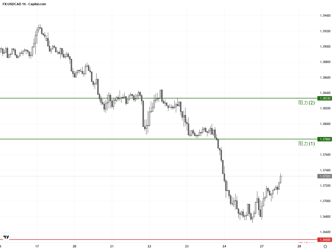 技術面指出,USDCAD目前正處於關鍵支撐區的試探階段,日線及小時線均顯示下行壓力逐步減弱。重要的蠟燭圖信號如近期出現的長下影線暗示買入力量增加。MACD有望形成正向交叉,顯示短期底部可能正在築成。投資者應留意若價格穩守1.3650支撐不破,則可能展開新一波反彈。今日經濟數據主要集中於歐洲及美國房地產和消費者信心指數,對USDCAD直接影響有限。加拿大和美聯儲利率決議預計將於近日公布,但今日並無顯著的利率或就業數據釋出,短期內不會對USDCAD造成直接衝擊。投資者可關注後續公布的美國消費者信心及製造業數據,這些資料將有助於判斷美元的後市動能。