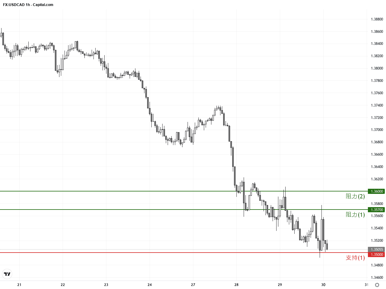 技術面上,USDCAD日線偏空格局明顯,MACD死叉及價格在移動平均線下方走弱,顯示中長期看跌趨勢。截至小時線圖中形成的短期反彈可能為波段調整,短線存在逢低買入機會,但需警惕阻力位附近的賣壓回落。整體成交量保持平穩,且油價上漲依舊是支持加元的重要基本面,交易者需密切關注油市動態與加拿大貿易數據。
