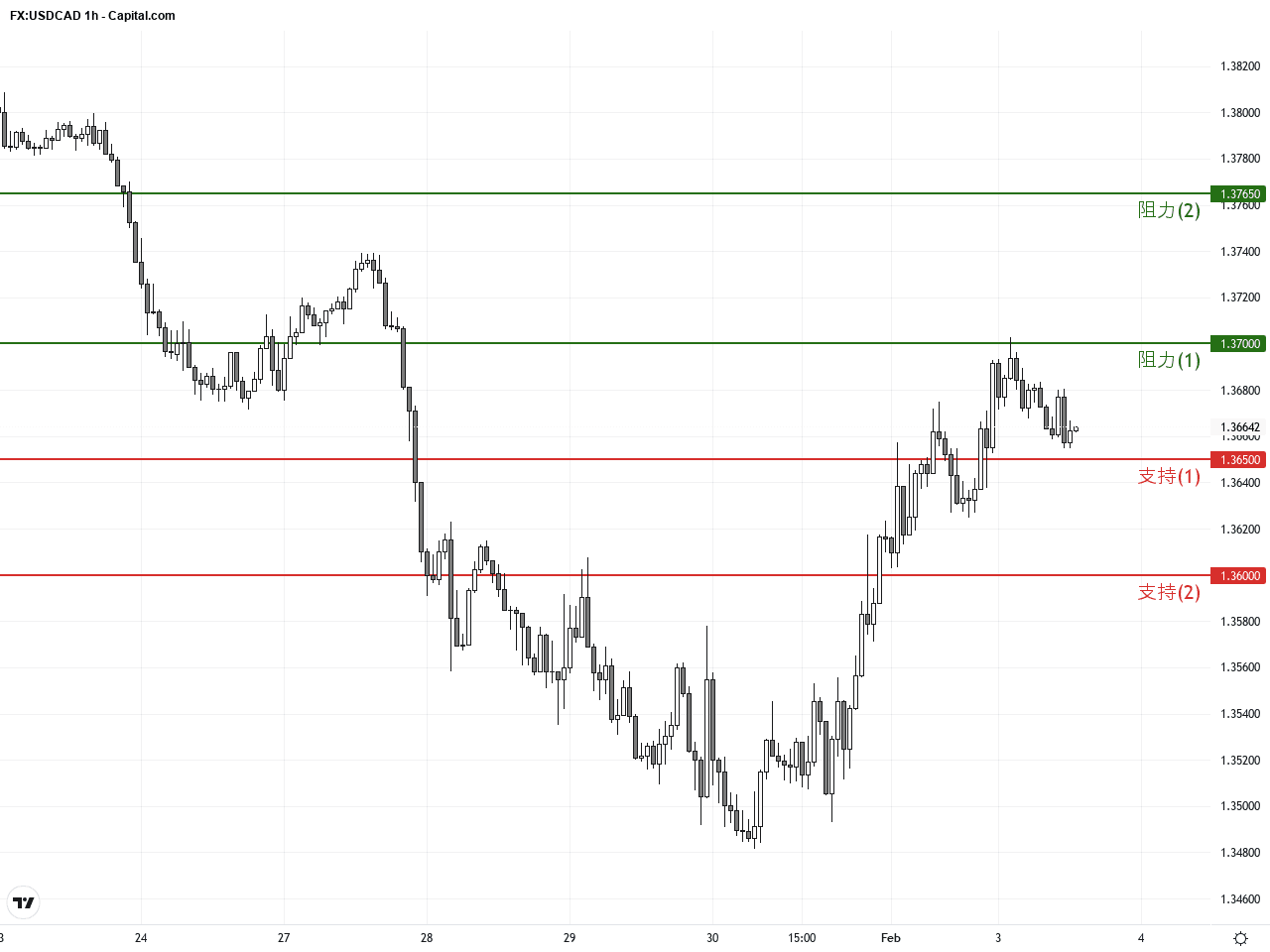 過去24至48小時內,美元兌加元(USDCAD)呈現波動回落趨勢,昨日收盤價為1.3661,較前日略跌。近期市場受多重因素影響,包括美國部分政府機關關閉帶來的不確定性、貿易政策憂慮,以及加拿大央行維持利率不變的消息。這些因素交織,促使美元兌加元在亞洲早盤階段跌至約1.3650附近。
