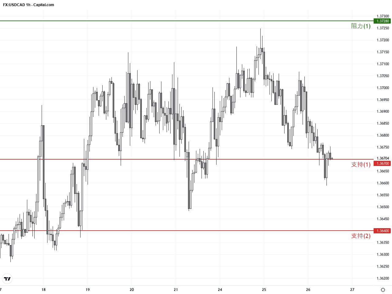 目前USDCAD技術面亮點在於日線三角形整理明顯,價格在1.3728關鍵阻力所在,突破該水平將激發後續多頭動能。近期MACD轉強,加上1小時圖短線動能提升,短期看多信號增多。但需警惕空頭吞沒形態帶來的回調風險,交易者應密切監控成交量及關鍵支撐1.3670的守護情況,以把握高概率交易機會。今日GMT+1時間所列經濟數據中,對USDCAD直接影響有限。加拿大將於14:30公布第四季度經常帳,市場預期從-9.68億CAD改善至-7.9億CAD,若數據優於預期,有利加元走強,反之則美元有機會回穩。此外,晚間美國將發布初請失業金數據及多位FOMC官員發言,投資人需密切關注,這些事件將對美元情緒及USDCAD短期走勢產生影響。