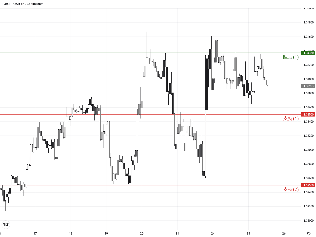 過去24至48小時,英鎊兌美元(GBP/USD)維持在1.34附近波動,開盤價約在1.3411,略高於昨日收盤的1.3392,呈現微幅震盪。英鎊在本周初經歷了一波劇烈的價格來回波動,但隨著市場聚焦於即將公布的英國消費者物價指數(CPI)數據,匯價持穩在1.34大關。