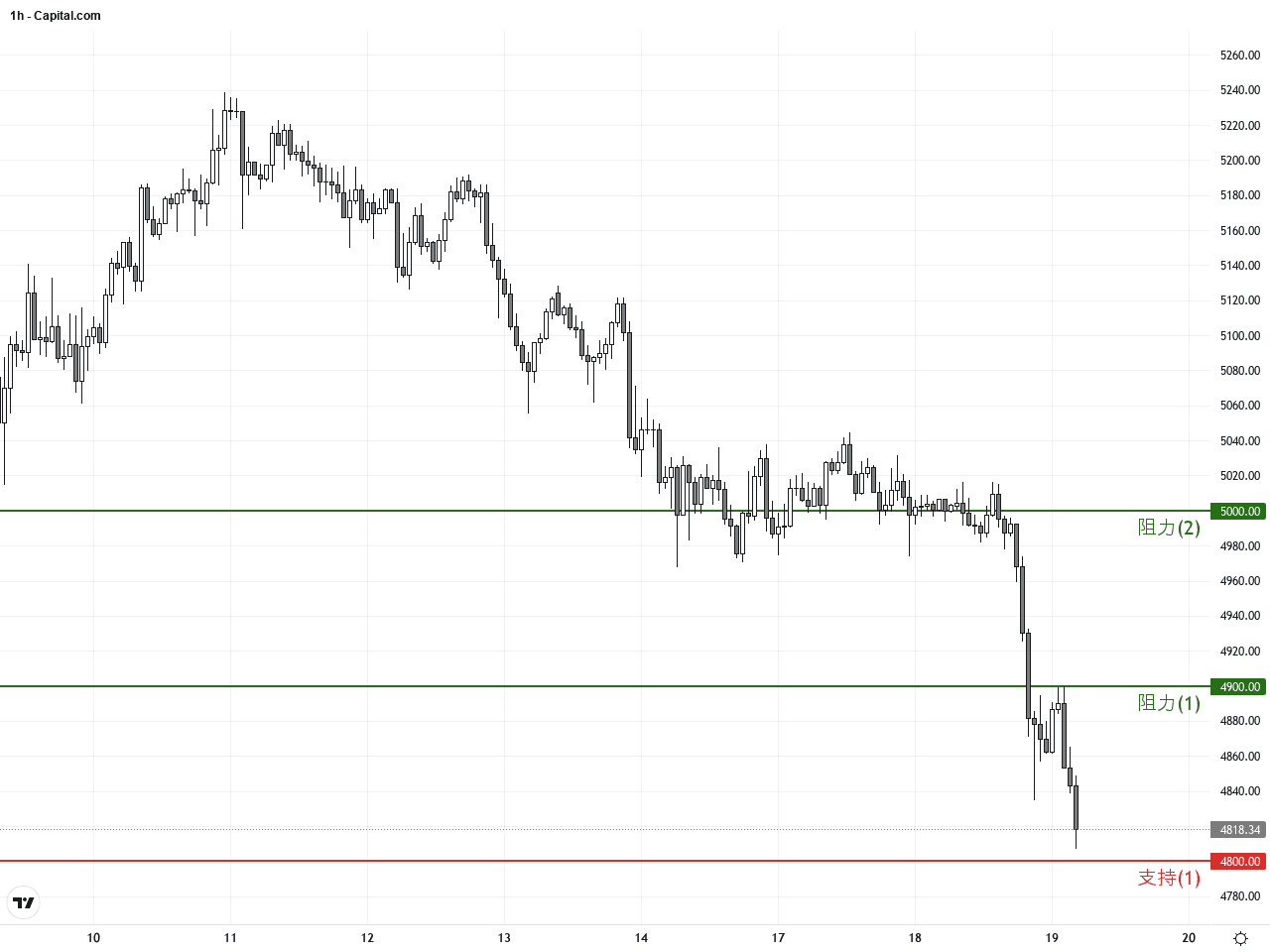 過去24至48小時內,黃金(XAUUSD)市場出現明顯波動。自2026年3月18日收盤的4825.15美元開始,黃金價格因多重因素下跌超過2%,一度跌破關鍵的5000美元心理關口,展現出市場對即將公布的美聯儲利率決策的高度敏感度。