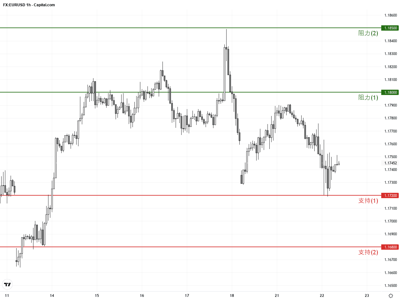 過去24至48小時,歐元兌美元(EUR/USD)在市場劇烈波動中維持在約1.1750的水準附近,較昨天收盤價1.1744稍作波動。美元因與伊朗達成為期兩週的停火協議而出現修正,但地緣政治的緊張局勢仍然嚴峻,尤其是中東霍爾木茲海峽相關風險不斷升高,對市場造成一定壓力。