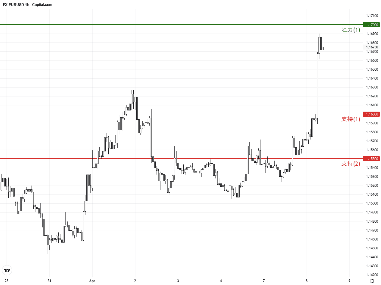 過去24至48小時內,歐元兌美元(EUR/USD)呈現顯著波動,價格自昨日收盤價約1.1597附近強勢反彈,上漲至約1.1671,漲幅超過0.6%。這輪漲勢背後的主要推動力是美國前總統特朗普提及美伊有望達成一項持久和平協議,緩解了市場對中東衝突升級的擔憂。