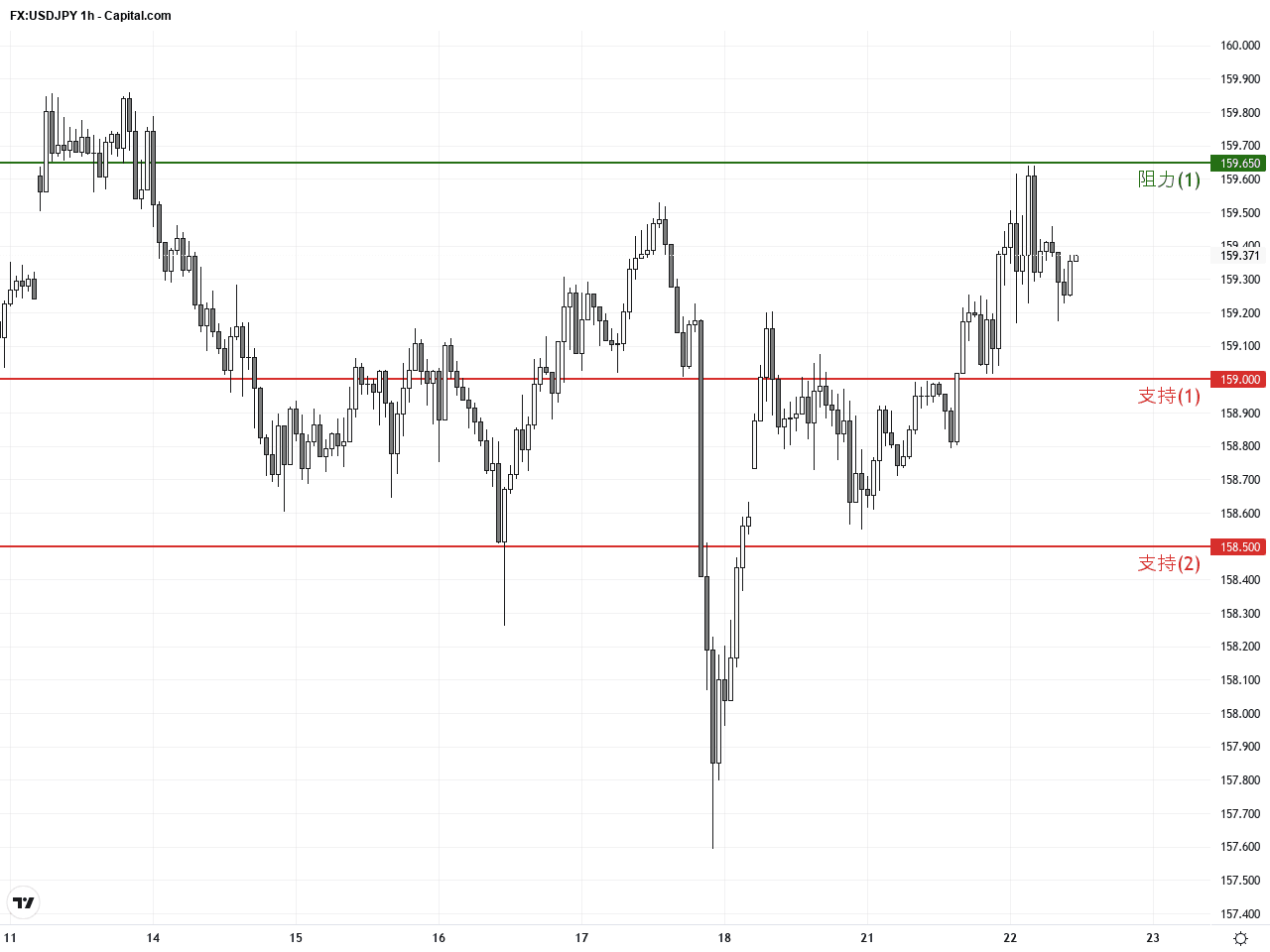 在過去24至48小時內,美元兌日圓(USD/JPY)走勢明顯受到美國與伊朗地緣政治局勢的不確定性影響,呈現上升趨勢。繼昨日收盤價約159.35後,USD/JPY在周二表現強勢,一度觸及159.65的高位,最終狹幅盤整於159.40附近,較昨日收盤微幅上漲約0.37%。