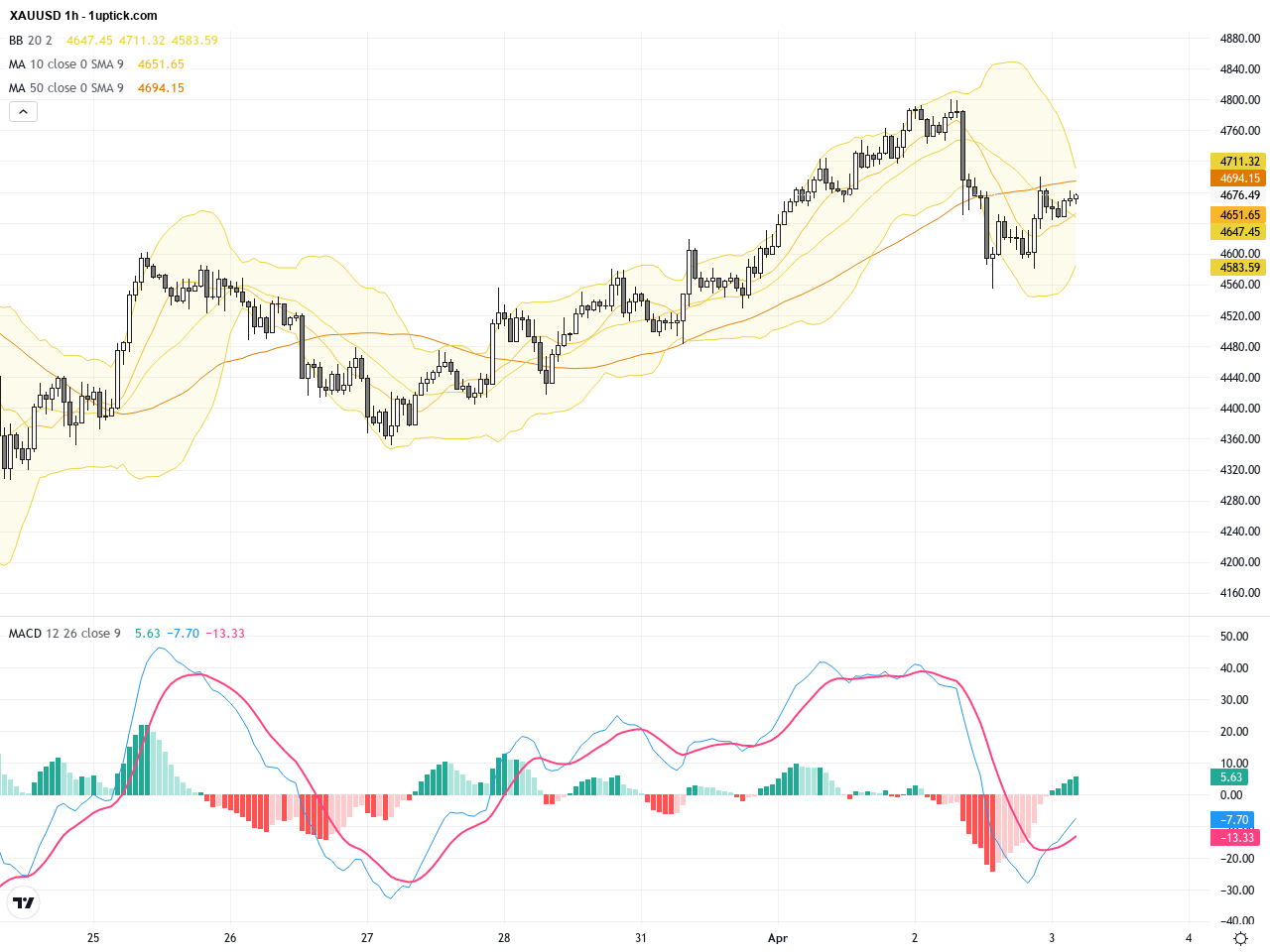 技術面來看,XAUUSD形成了旗形整理型態,該形態自3月31日開始逐步成型,為趨勢持續提供潛在突破機會。日線MACD趨勢尚未轉弱,且布林帶擴張意味將迎來波動加大。小時線的錘子柱顯示短期買方出現,若價格突破4750美元關口,短線可望帶來快速反彈。投資者須密切監控交易量和MACD動向,尋找入場最佳時機。今日GMT+1時區經濟日曆顯示,對XAUUSD最具影響力的美國財經數據包括14:30的美國貿易收支、出口及進口數據,以及每週初請失業金人數,這些反映美元強弱的關鍵指標。近期美元走勢與貿易數據息息相關,若數據利好美元,黃金可能承壓下跌;反之則有利黃金上行。其他全球主要經濟體數據如澳大利亞貿易差額、瑞士CPI等影響有限,對XAUUSD直接影響較小。