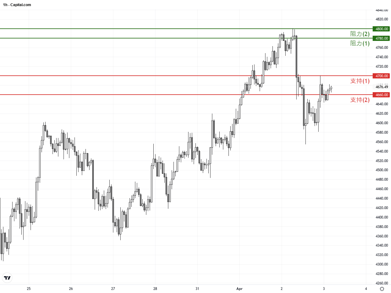 過去24至48小時,黃金價格(XAUUSD)呈現顯著波動,2026年4月2日的收盤價為4669.955美元,自此以來市場一度觸及約4553美元的低點,反映出投資者在全球地緣政治風險緊張局勢下的謹慎態度。美國前總統川普近日強硬表態稱將對伊朗採取“極其嚴厲”的行動,此言論推高原油價格並令避險黃金短暫下挫,因資金部分流向能源板塊,但隨後黃金價格展現韌性,逐步回穩至4700美元附近,顯示投資者持續尋求對抗不確定性的資產保障。