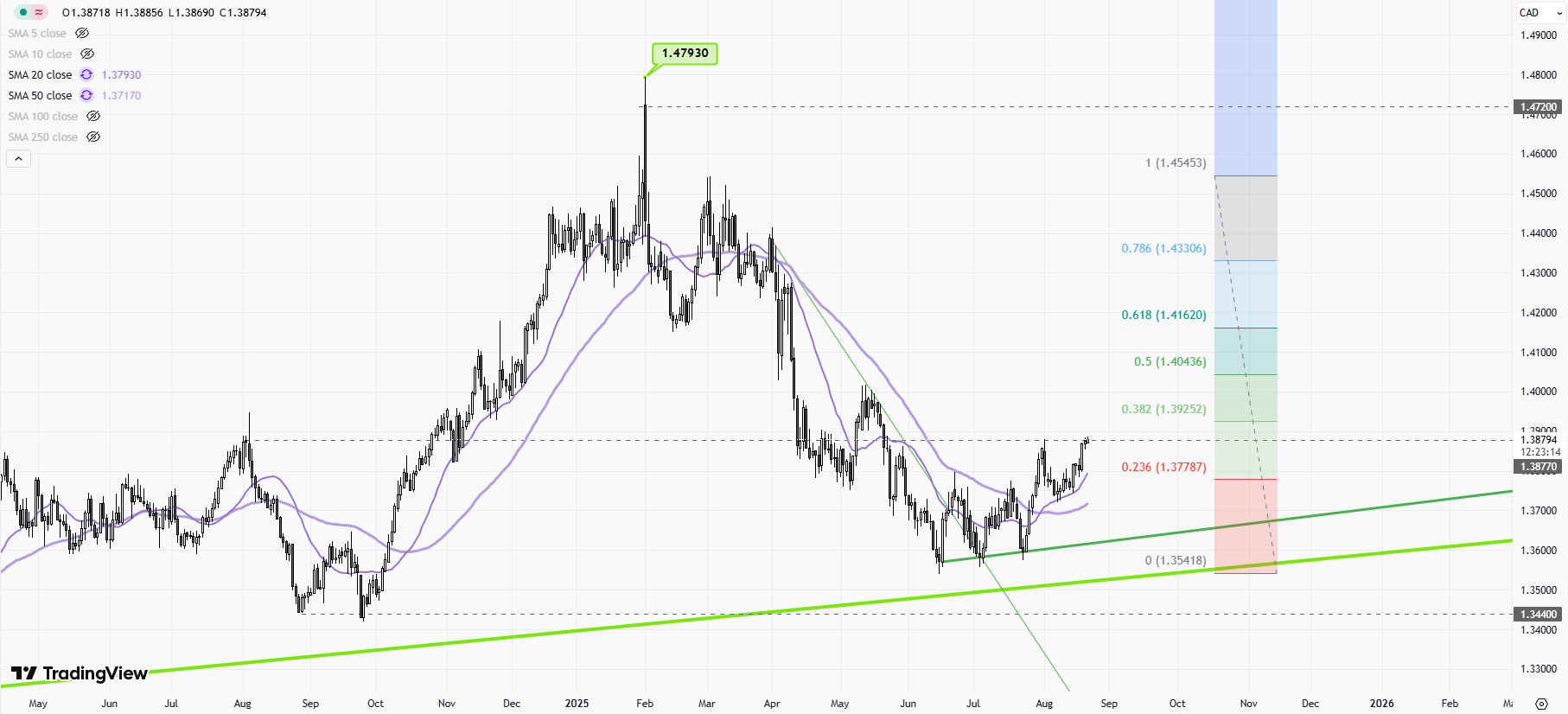 過去一週,美元兌加幣(USD/CAD)匯率出現顯著上揚,突破1.38關卡,至2025年8月21日達到1.3882,反映出加拿大元持續走弱。此走勢主要受加拿大央行在近期通膨數據疲弱後,市場對降息預期升溫影響,加上7月份意外出現的勞動力市場縮減所驅動。同時,美元持續走強,源於市場對聯準會未來政策走向的不確定性,投資人聚焦即將發表的聯準會言論及可能重新啟動貨幣寬鬆的預期。美國持續關稅政策、經濟差異及突破關鍵阻力位的技術動能,也助長美元兌加幣的多頭趨勢。儘管短期內波動加劇,整體展望仍高度依賴各央行政策行動、經濟數據與地緣政治發展。